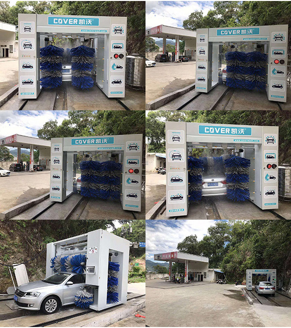 中國福建南平環城路鴻雁加油站安裝凱沃龍門5刷洗車機現場調試拍攝