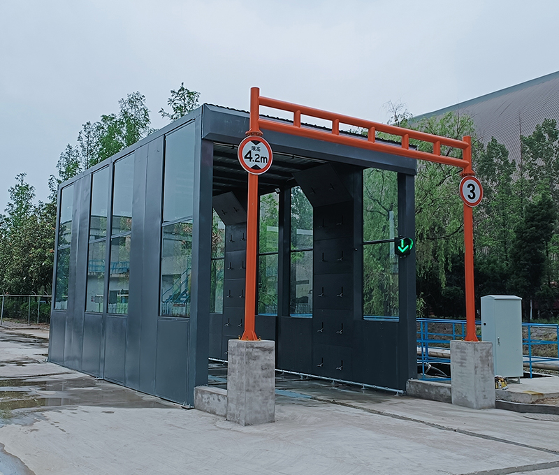 被洗車輛駛離洗車區(qū)域完成沖洗